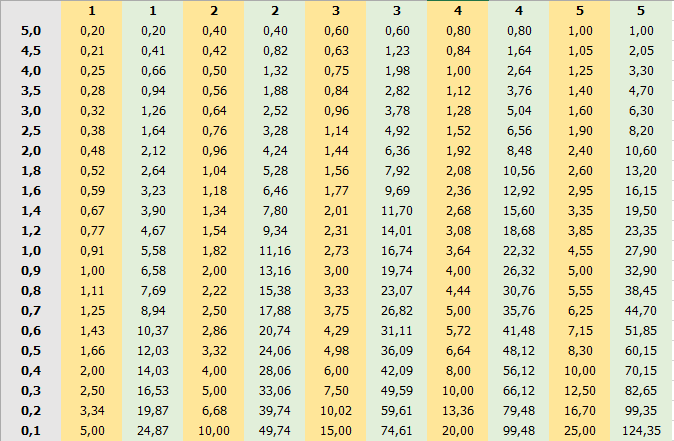 The vertical scale is speed, the horizontal scale is digit capacity. The green columns give points for speed, the yellow columns show the total speed for previous tasks/problems. For example, a child immediately counted and confirmed an example at a speed of 0.6, single digits. He is immediately given 10.37 points.