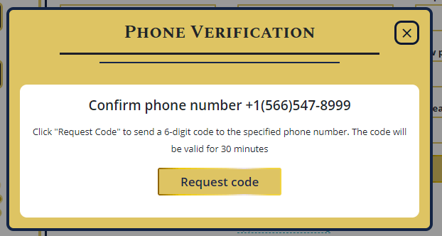 Next step, you need to confirm your phone number. To do this, click on the "confirm your phone" under the "Phone" field and click "Request code" in the pop-up window.