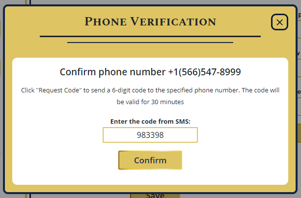 Press "Confirm" button and if the code is correct - the phone will be confirmed.
