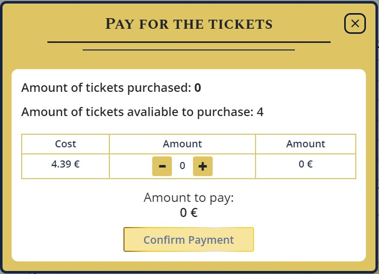 In order to participate in several levels, you need to pay additionally by clicking on the "PAY" button. You can either buy one ticket at a time or pay for several tickets at once.